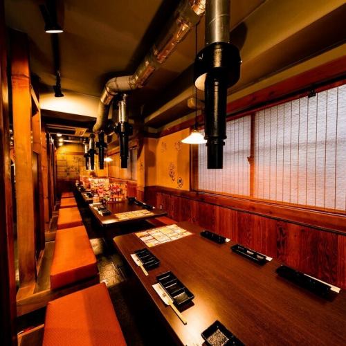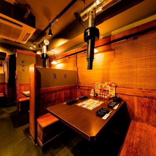 【デートや女子会に☆】余裕をもたせた席配置なので隣を気にせず、ゆっくりを食事をお楽しみ頂けます♪吸煙パイプで煙対策もバッチリ!!みんなで七輪を囲んで盛り上がろう♪♪いろいろ選べて注文楽々の食べ飲み放題もアリ★(写真系列店)